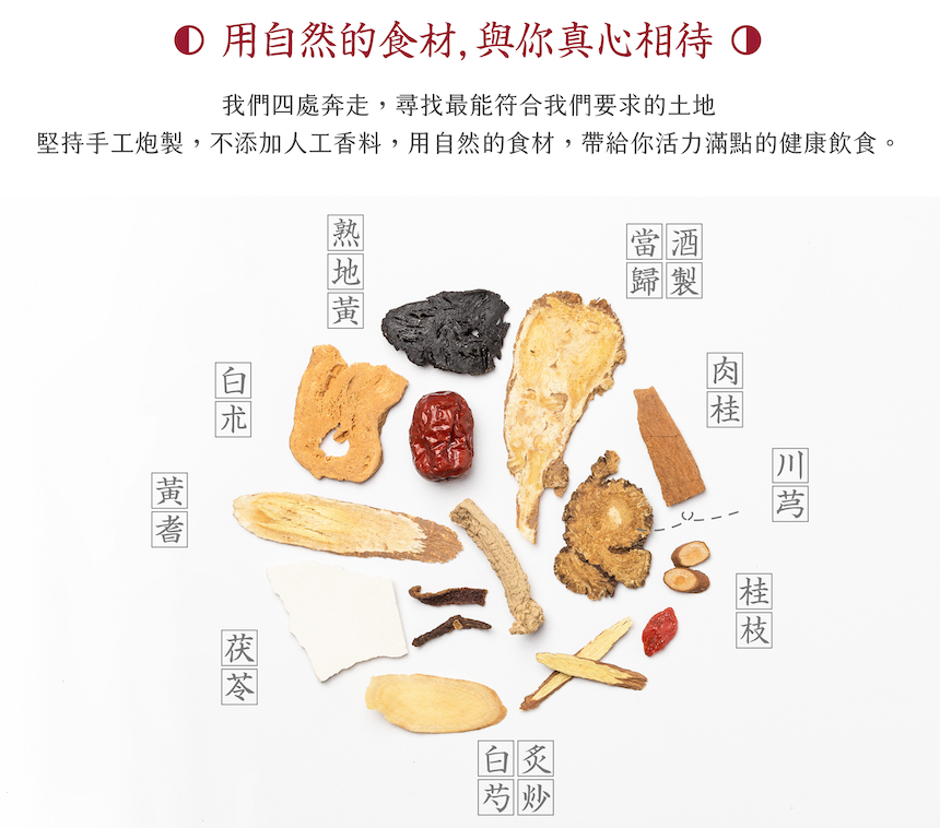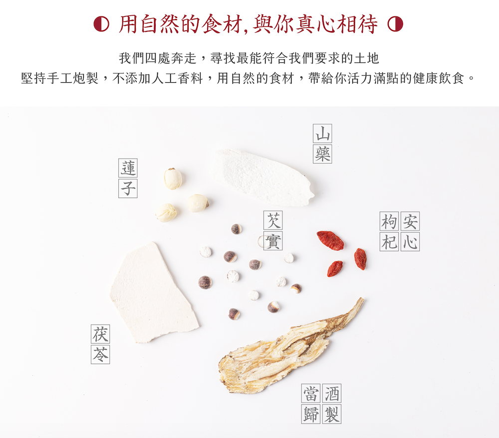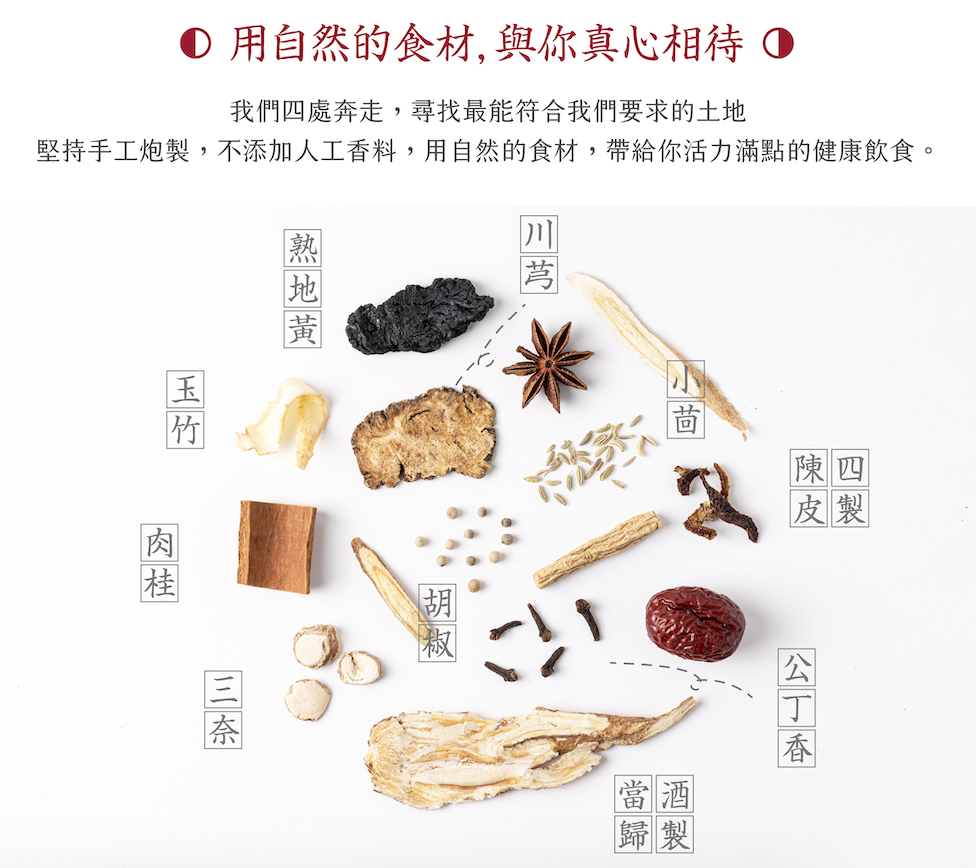 十八種獨門配方,每一味漢方食材手工炮製,去除食材本身雜質,讓美味更純粹,湯頭清甜高雅低負擔,無添加人工添加物,料理簡單又方便,是一年四季男女老少都能喝的溫和養身湯療。