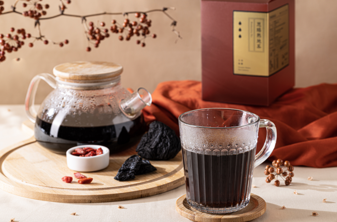 新譯漢方親手培育頂級食材「九蒸九曬高機熟地黃」,以古法炮製進行九次的蒸曬,讓熟地口感溫和、滋補強身。茶湯黝黑卻不苦澀,口感似黑糖般甘甜,擁有豐富的膠原、多醣體,與枸杞的維生素營養,為你帶來一杯深層的頂級保養。