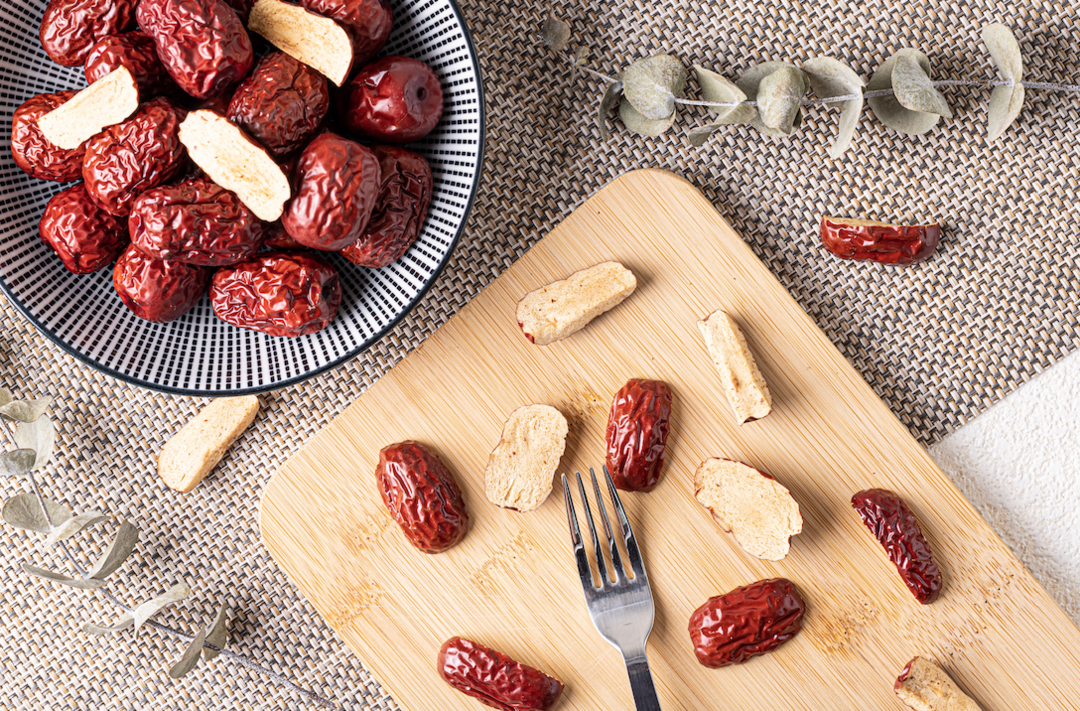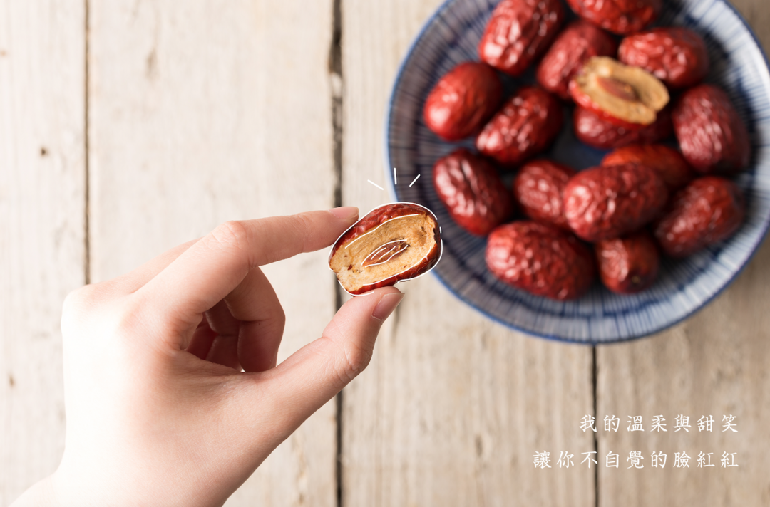 紅棗一直是深受人們喜愛的食物,不論是在料理、泡茶、零嘴上都常常見到紅棗的身影。自然的紅棗含有蛋白質、脂肪、與多種礦物質,如鈣、磷、鐵等人體不可或缺的營養素,而豐富的維生素C也能養顏美容,一天吃個 4-5 顆輕保養,給自己健康補給、自然好氣色。