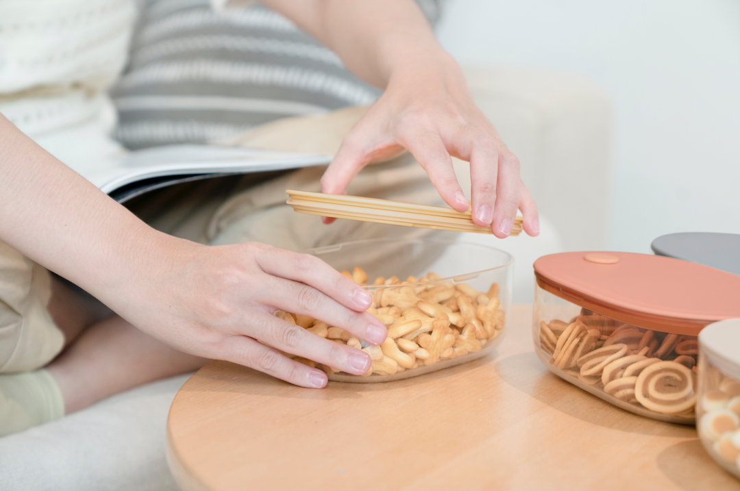 吃不完的裝進 Bingo 盒,保持鮮脆風味,在沙發吃還能接住掉下來的碎屑。