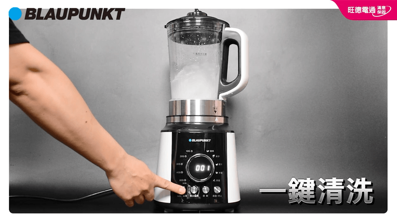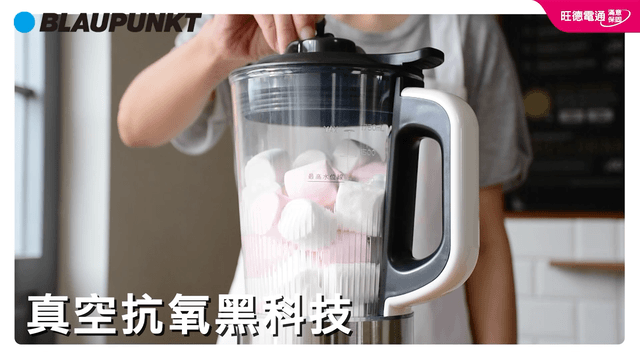 BLAUPUNKT 真空破壁調理機,結合高規格馬達與不鏽鋼刀組,高效真空效果達 -59Kpa,有效減緩食材氧化;五種預設模式,簡單直覺的介面設計,一鍵調理各種食材!另有自動清潔功能,減少手動清洗刀刃的危險,讓清洗更便利。