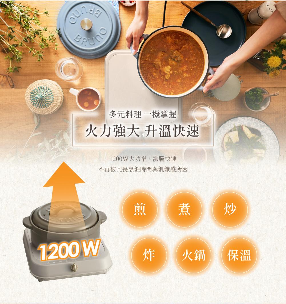 - 1200W 強大火力,高效快速升溫