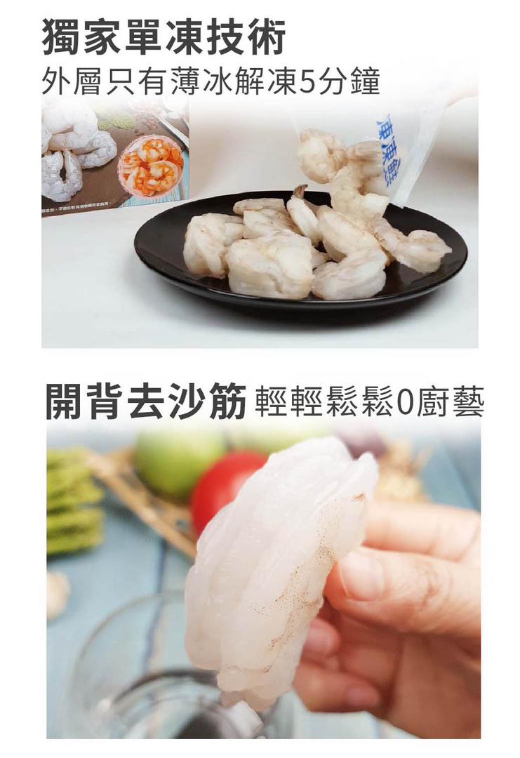 台灣專業工廠機器處理,比現剝還漂亮,開背徹底清除沙筋好乾淨、獨家個別急速單獨冷凍技術,顆顆分明,喜歡吃幾隻就解凍幾隻,不用再擔心吃不完或是反覆解凍。