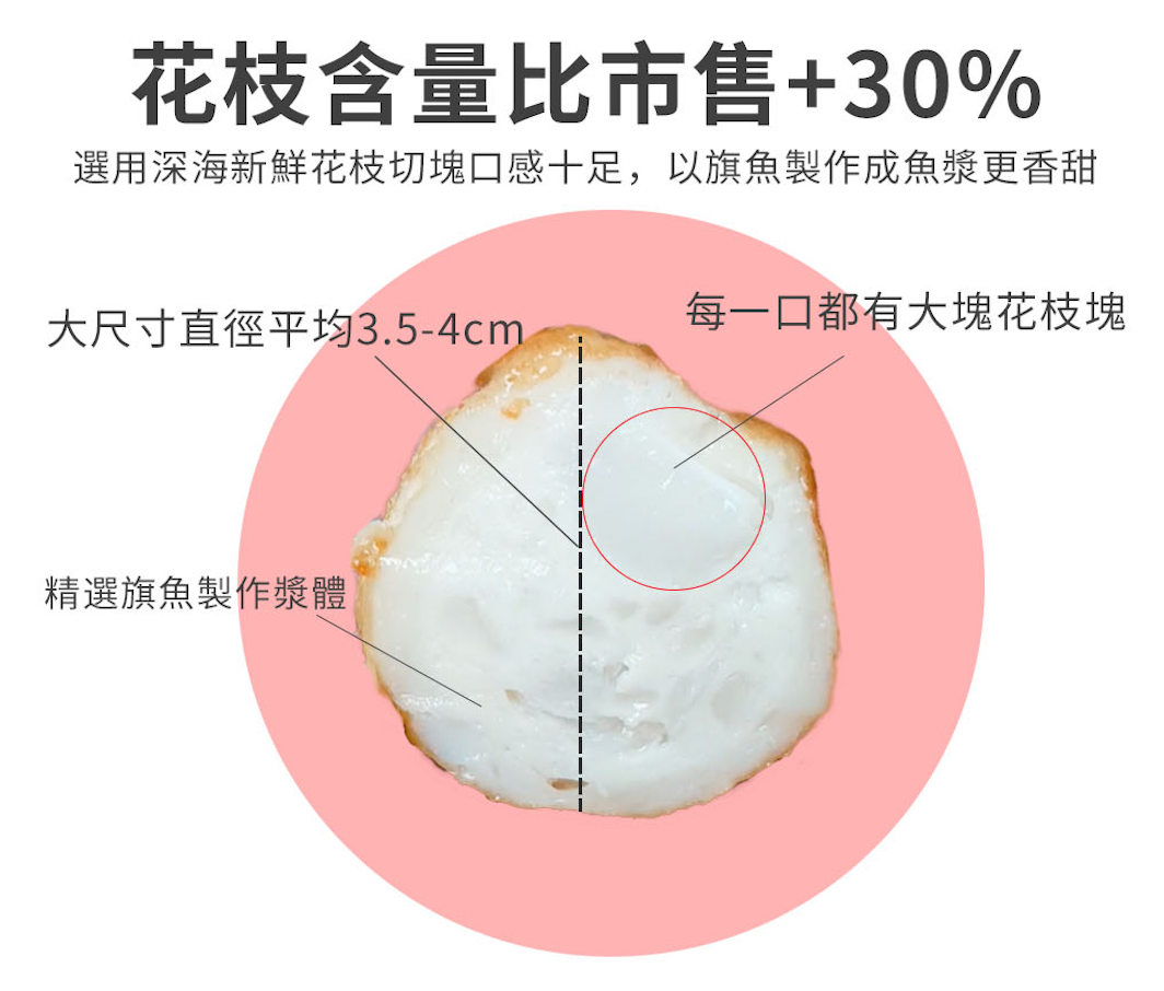 新鮮魚漿,滿滿花枝塊,香甜Q彈!