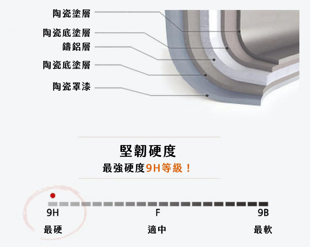 針對燉肉、煮湯的【 單柄鍋、雙耳燉湯鍋 】,所採用的陶瓷塗層成分為天然的礦土砂石(二氧化矽),與一般杯盤材質相同,對人體與環境都十分安全。陶瓷本身具有抗酸鹼、高硬度的特性,更讓鍋具清潔更便利。