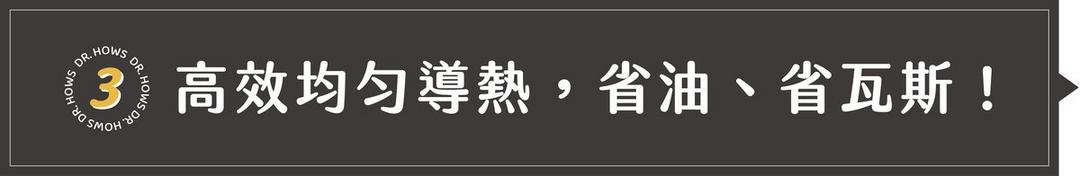 使用鑄鋁材質,鋁材質高效導熱的特性,讓鍋具導熱效果達到一般鐵鍋的 3 倍、不鏽鋼的 16 倍。同時,鍋底採用的圓形點傳導設計,能讓熱均勻地分散到各部位,降低烹飪所需的油量,與傳統鍋具相比,更節省將近 50% 的瓦斯用量!