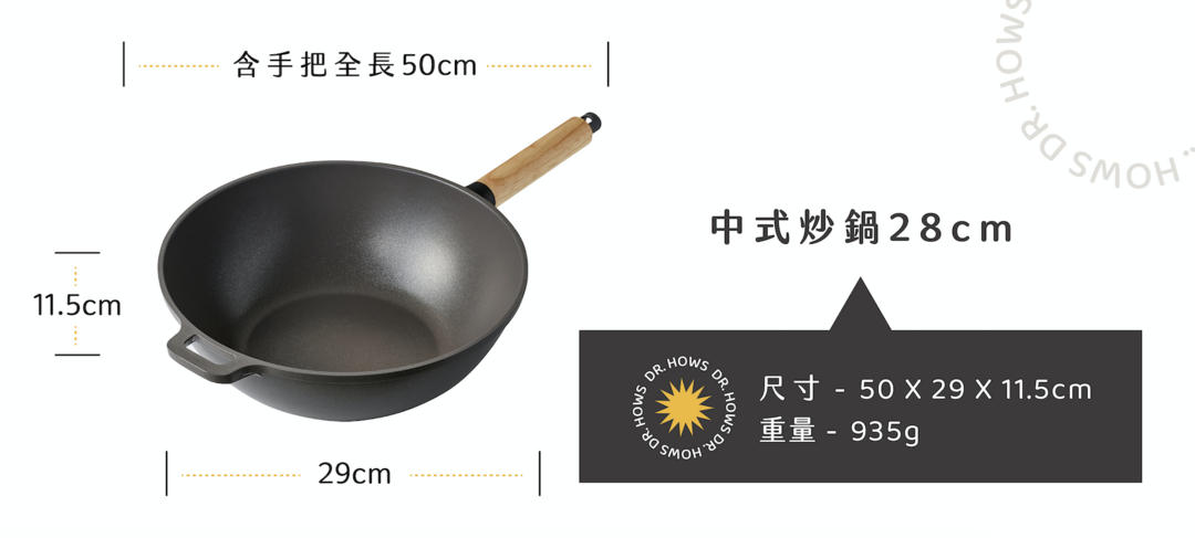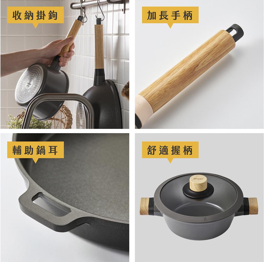 - 加長鍋柄:減少木質鍋柄在高溫料理時損壞。
