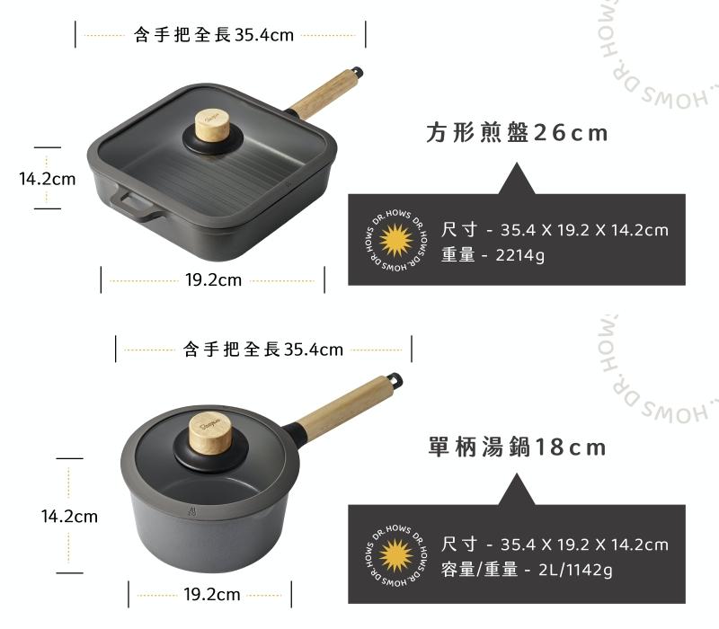 款式:平底煎鍋、炒鍋、方型煎盤(含鍋蓋)、單柄湯鍋(含鍋蓋)、雙耳燉鍋(含鍋蓋)