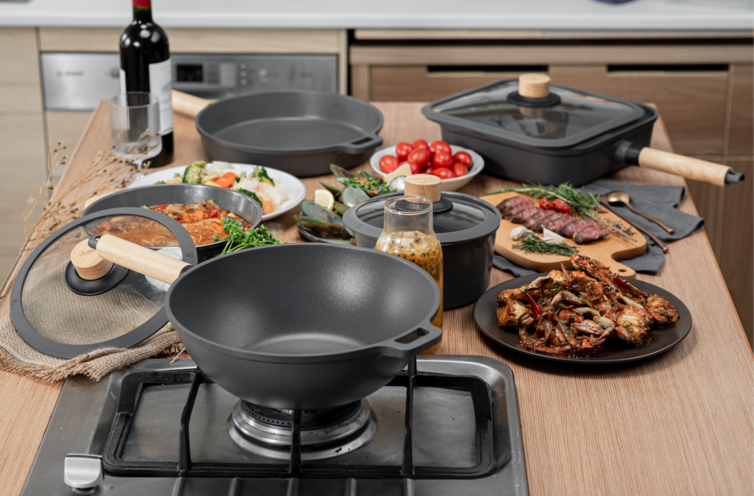 讓 BOSQUE 鍋具組特別適合國人煎、炒、炸的烹飪方法,不僅不用擔心起鍋慢熟、或是食材燒焦,更能有效降低油耗與油煙。