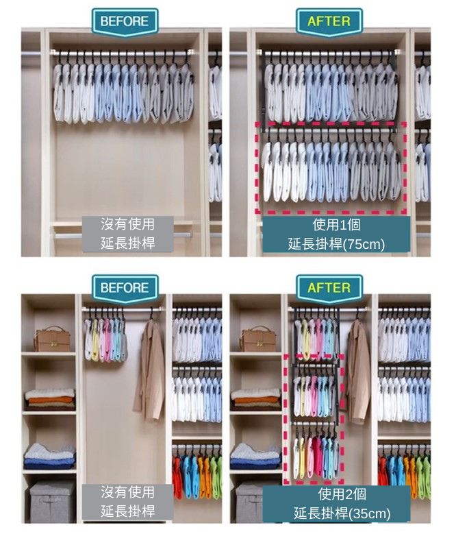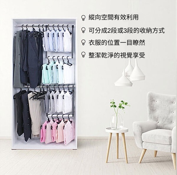 簡單收納技術,讓縱向空間有效利用,一年四季的衣服都能掛在衣櫃裡。