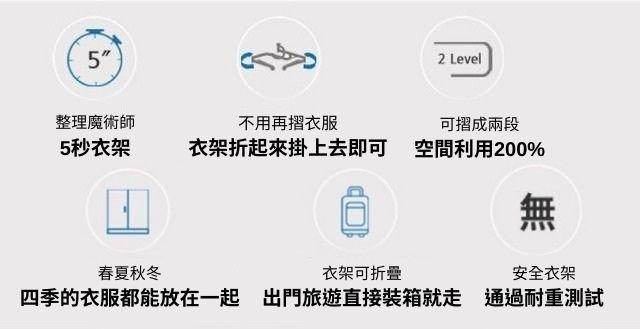 魔法折疊衣架採用 PP 材料製成,耐久耐用,不會彎曲或斷裂;完成耐用測試,最大 5kg 重量也沒問題!