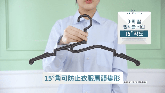魔法折疊衣架的肩角設計為 15 度,可減少長期存放衣物時衣架造成的難看痕跡。