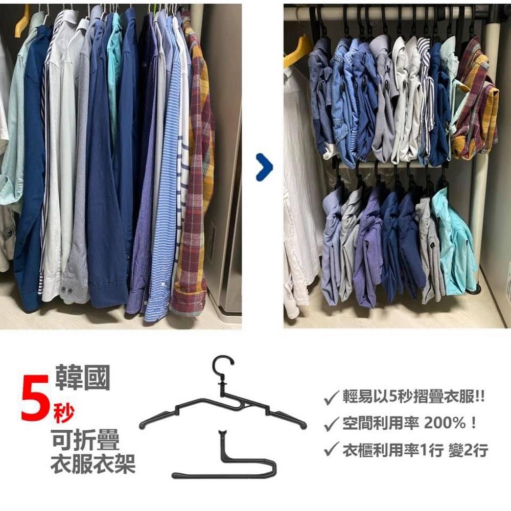 魔法折疊衣架能有效釋放 50% 衣櫃空間,令人怦然心動的衣物收納神器,能夠五秒內完成「摺+收」,讓摺衣服變得好療癒,外出好攜帶的收納工具。