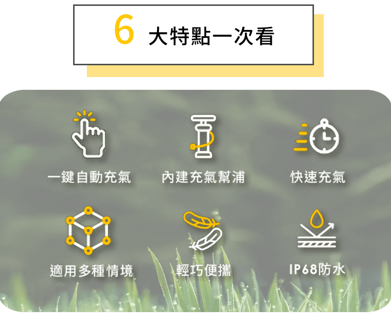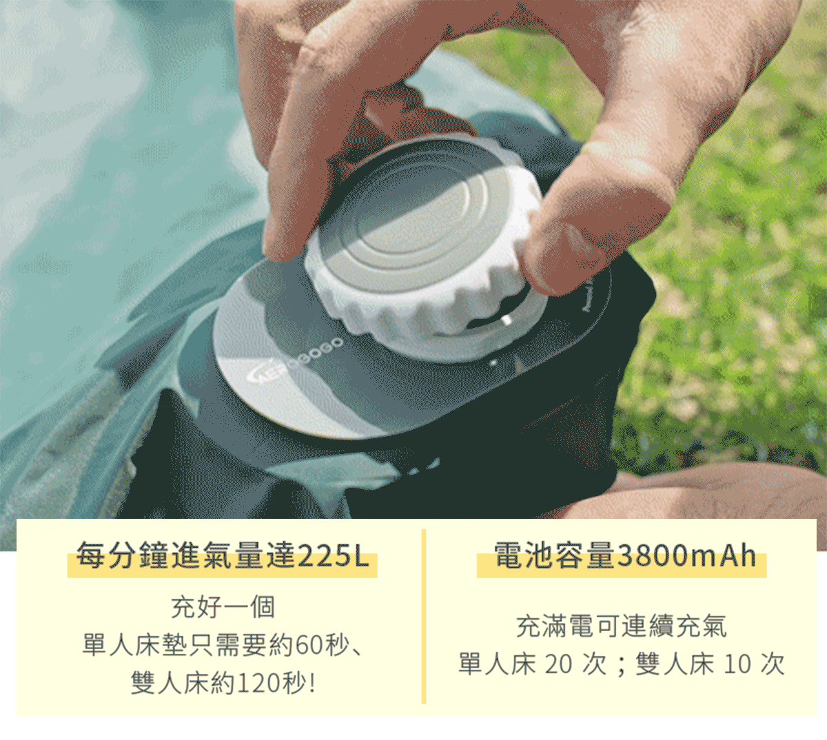- 一鍵自動充氣,內建高壓充氣幫浦