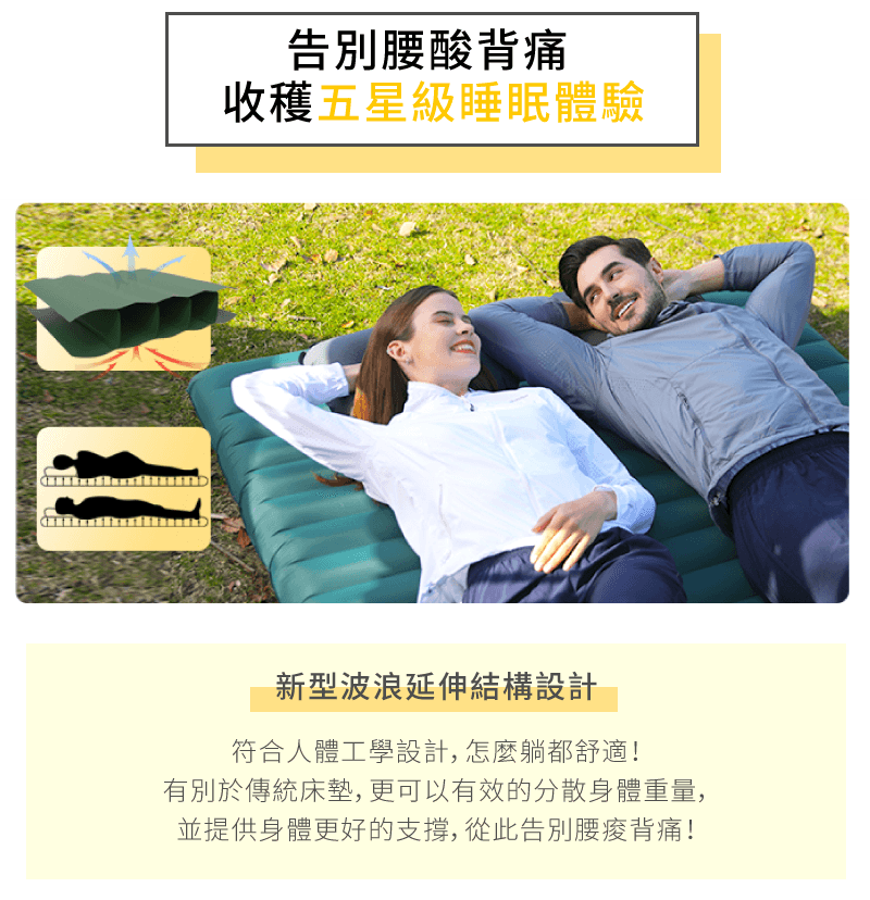 自動充氣的床墊讓你完全不費力,躺起來真心舒服!