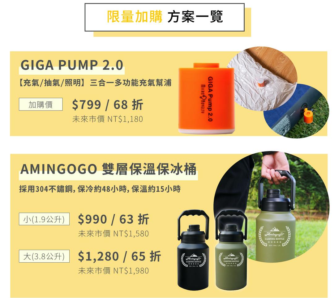 1. 須購買 GIGA 全自動充氣睡墊,才享有加購資格。