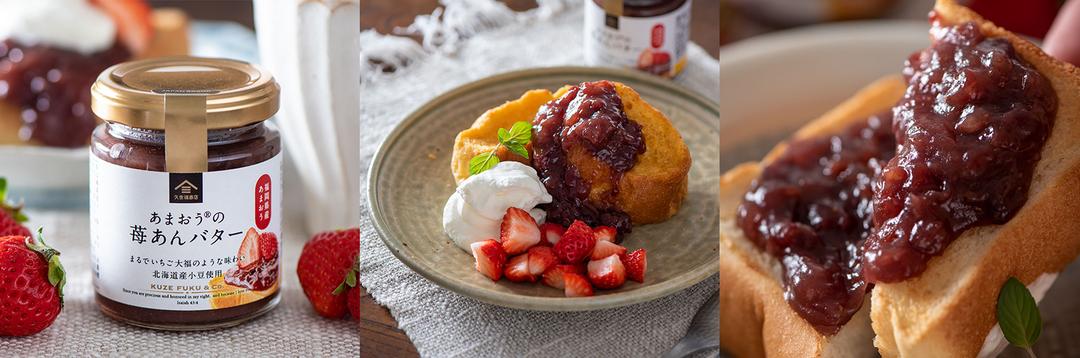 使用北海道產的紅豆和福岡甘王草莓製作,帶出紅豆泥、奶油的味道和草莓濃郁香味之間的完美平衡,不僅適合搭配麵包,也推薦用於年糕和白玉!