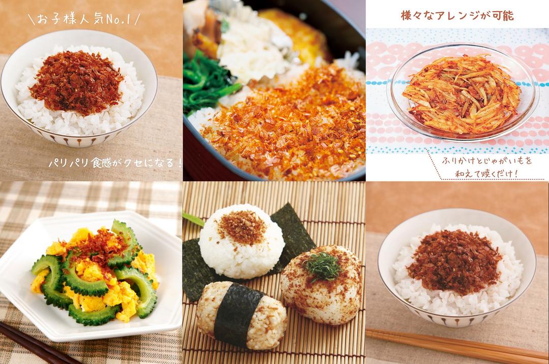 使用醬油和白糖等盡可能簡單的原料製作的,樸素而令人懷念的鰹節屋的拌飯料。在鰹魚的爽脆口感上添加了芝麻的香氣。 因爲不添加化學調味,所以即使是小孩子也可以放心食用。很多顧客說:「不怎麼吃飯的孩子怎麼吃這麼多呢,一口接一口很快就吃完了。」 請務必試一試這美好的滋味。