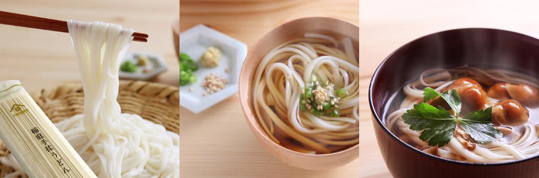 傳承傳統製作方法,從揉麵團到乾燥全手工製做的烏龍麵,使用優質麵粉、水和鹽,並通過傳統的製造方法精心製做;產於秋田縣稻川町稻庭地區,比一般烏龍麵要來的細一些,呈現出淡淡的奶油白,具有光滑的質地和嚼勁十足的口感。