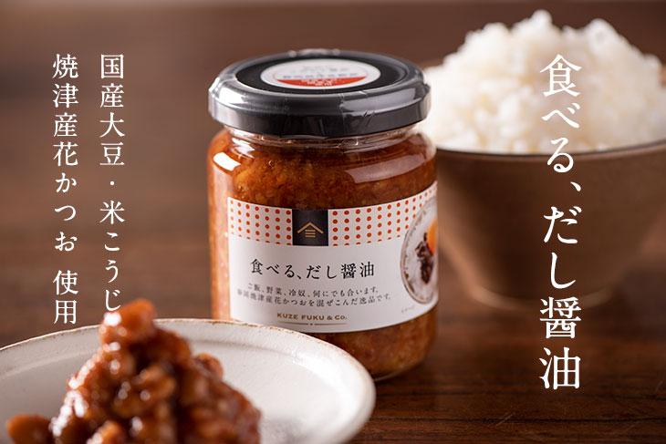 在奢華特調的醬汁中,加入了久世福的萬能高湯中所熟知的靜岡縣燒津市的鰹魚,增添了魚湯鮮甜的風味;這是一種鹹醬油,可以直接吃到釀造發酵的日本國產大豆和日本國產米,搭配白飯一起食用更是人間美味。