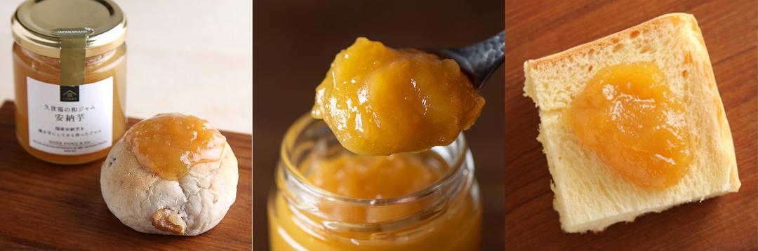 使用日本九州產安納芋製作,口感像蜜豆沙,並帶有溫和的肉桂香氣;經由 180~200°C 烘烤一個多小時,製成紮實光滑的抹醬。搭配吐司和餅乾,或是用來製作甜點也很方便,也可以像紅豆泥一樣食用,推薦日式凍糕、冰淇淋和玉米片搭配食用,讓層次更豐富。