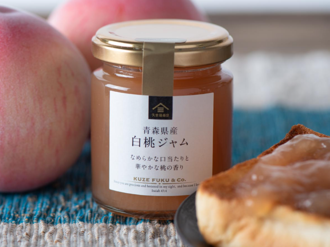 使用青森縣津輕地區種植的白桃,由於日夜溫差大和蘋果栽培技術的應用,是桃樹栽培盛產的地區。津輕產白桃的甜美多汁,將原料仔細打成泥製成果醬,順滑口感,放入口中蔓延開來的濃郁華麗甜味,讓人心曠神怡。
