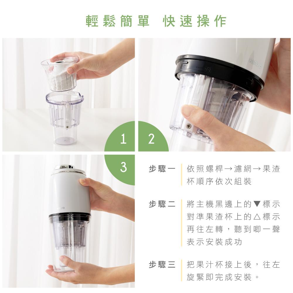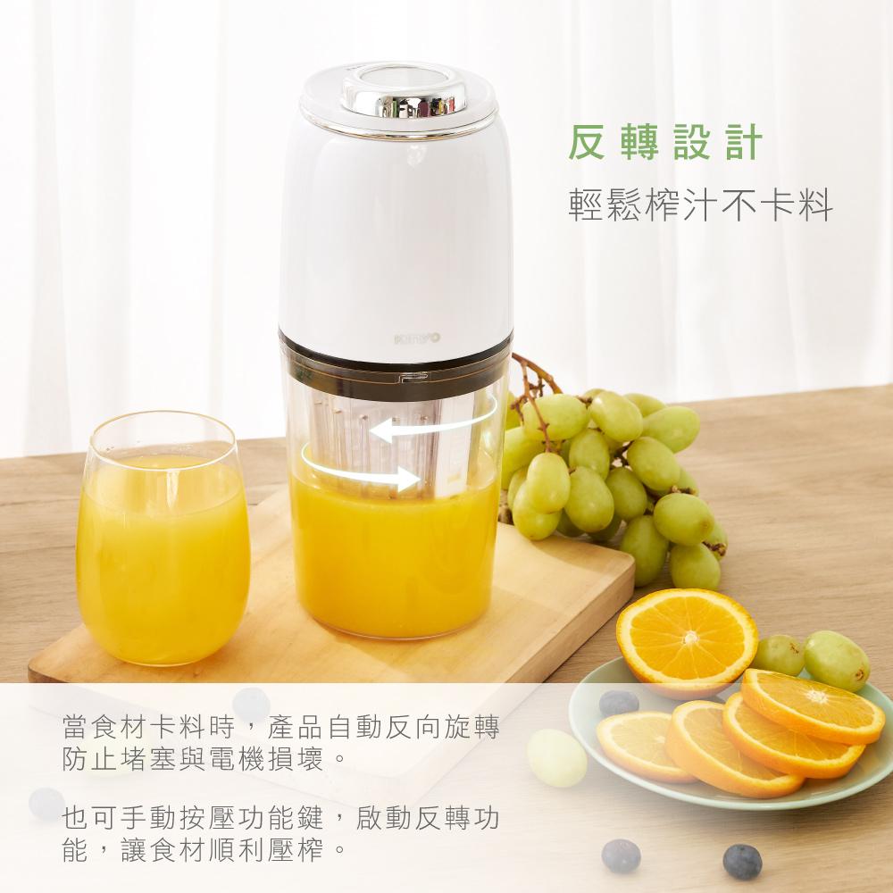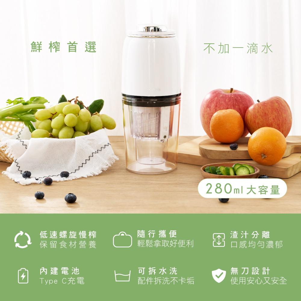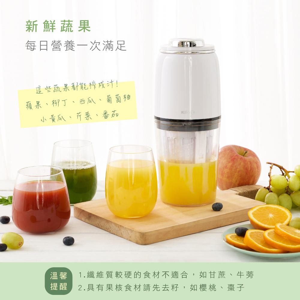 慢磨果汁隨時現榨,口感細緻、低氧化,保留完整營養,不必再手動過濾果渣;適合現代人忙碌生活,無線輕巧,無刀無網罩,配件均可拆洗,簡單好清潔!