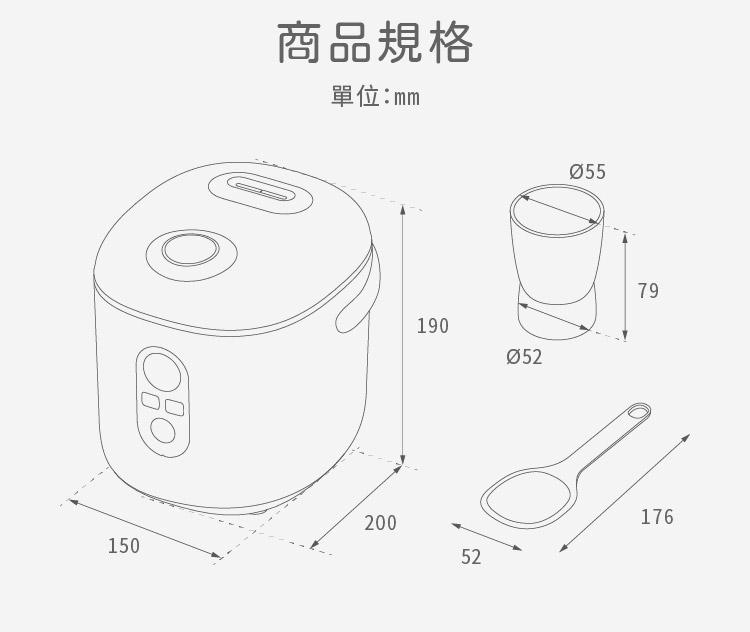 - 內容物:主機、電源線、內鍋、飯匙、米杯
