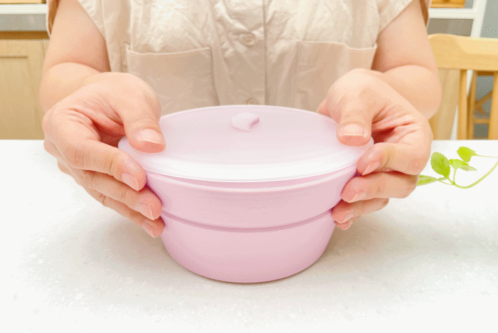 材質:碗身 100% 白金矽、金屬補強圈(不可摺曲)/碗蓋 微波級 PP