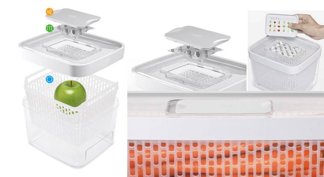 獨家專利設計 Green Saver,讓食物盡可能的不要縮短賞味期!透過天然椰殼活性碳吸收乙烯、內部濾籃強化空氣對流、以及可調節溼度的盒蓋,自然延長保鮮時間,有效管理食材。