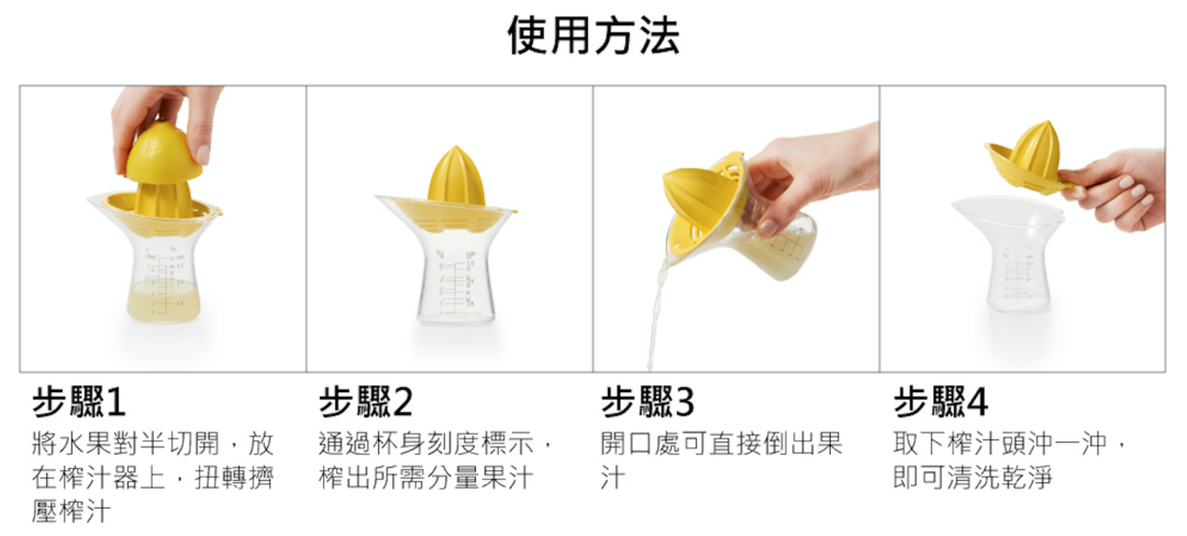 - 獨特鉸狀設計,輕鬆旋轉即可榨汁