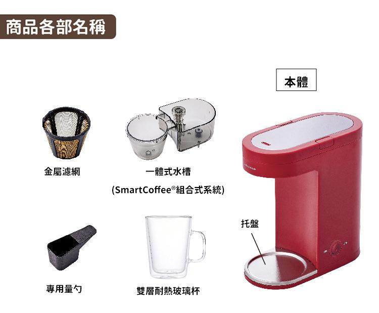 內容:主機、雙層玻璃杯、不鏽鋼金屬濾網、咖啡量勺、一體式水槽、專用簡易食譜