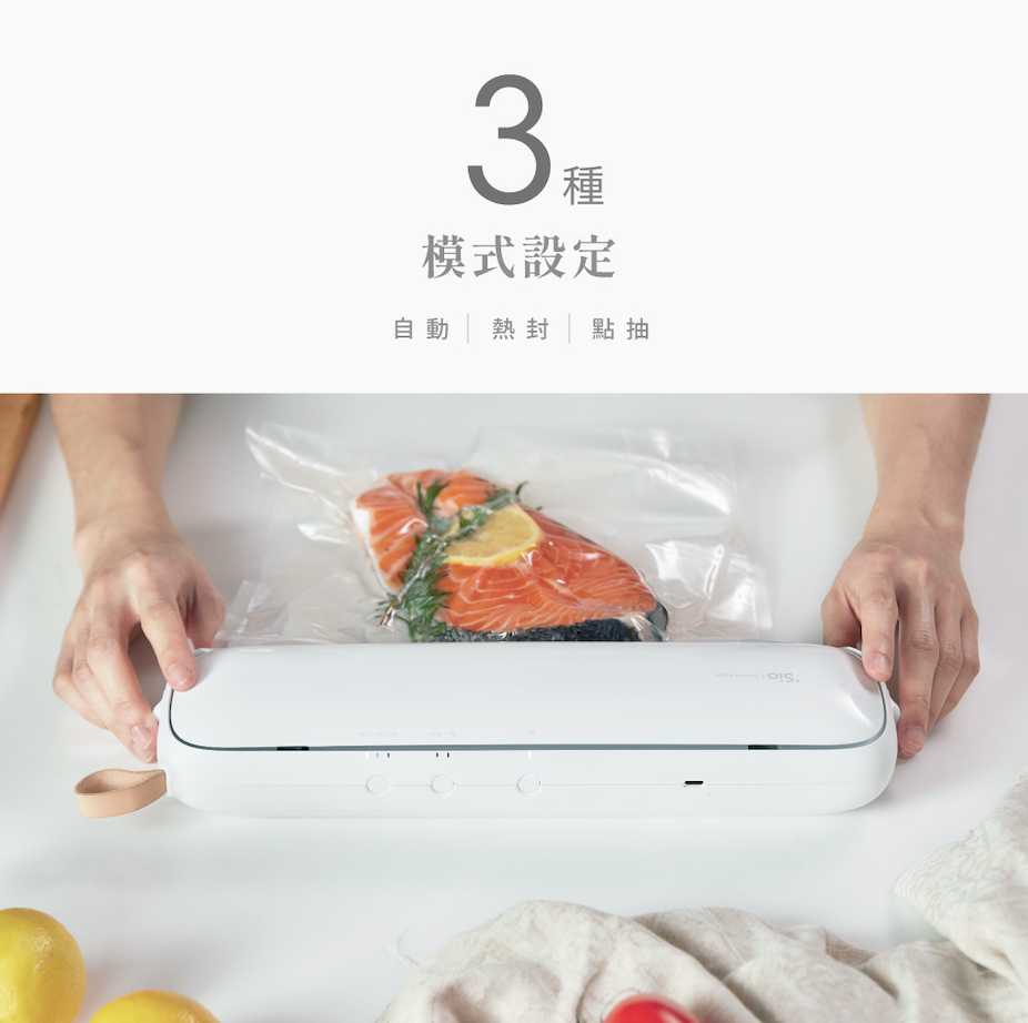 真空+熱封,輕鬆完成!台灣設計製造,輕量化免插電真空機,高效保存食材,可居家、外出攜帶使用;擁有「點抽」模式,可自行決定抽氣量,保存湯品更方便!最大可封口 30cm 袋寬,讓你輕鬆保存大份量的料理與食材。