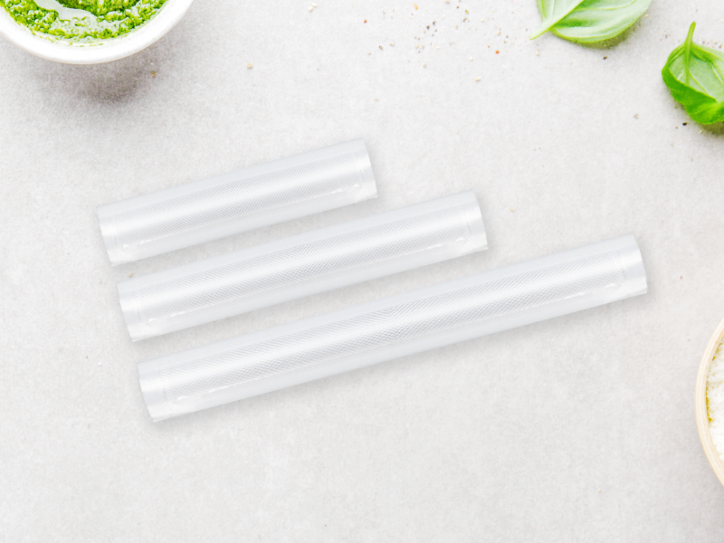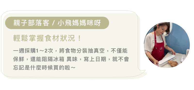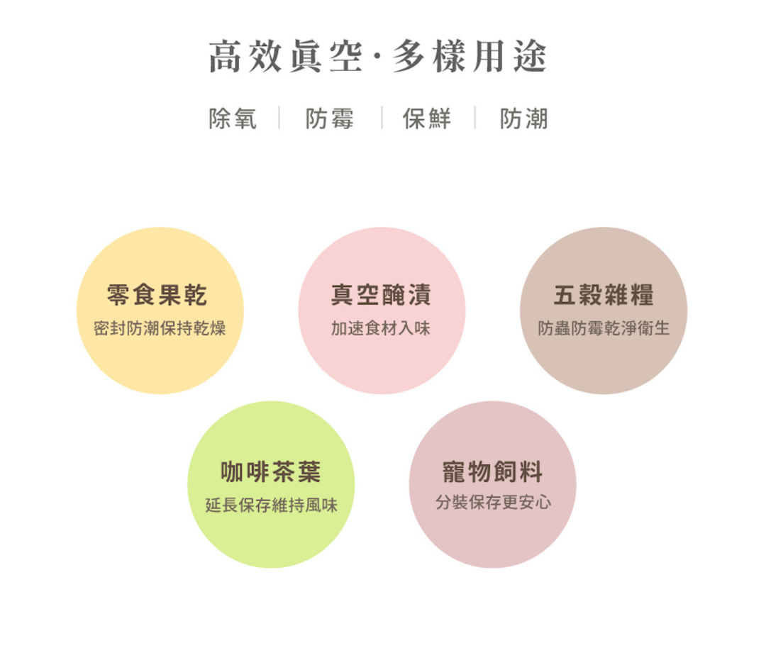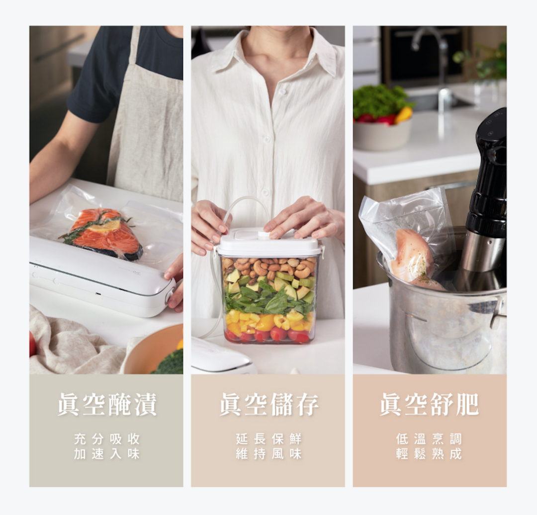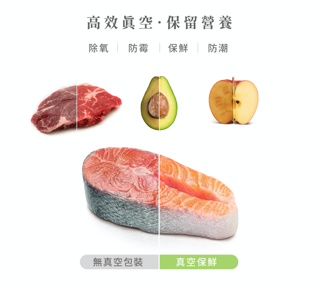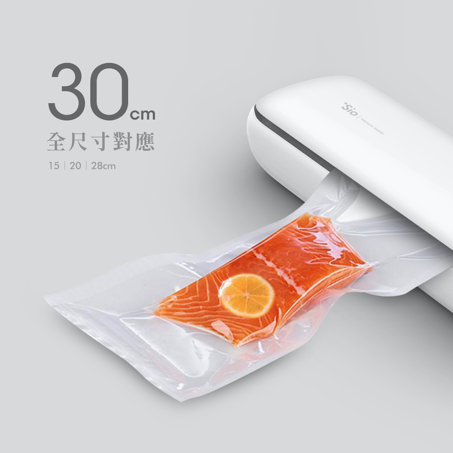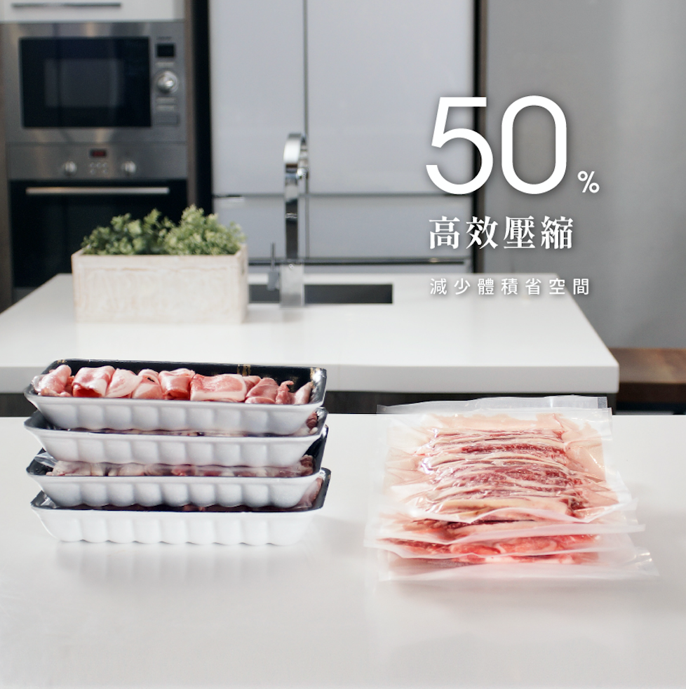 使用專屬壓紋保鮮袋,密封真空效果佳,延長食材保鮮期;採用耐高低溫材質,通過 SGS 認證,讓您安心處理食材,廚房應用更加方便!