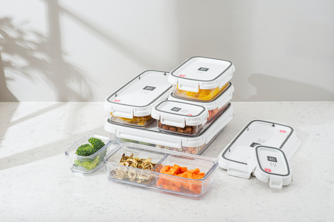 SKYLOCK 盒蓋使用了韓國昌信獨家專利技術將 PP 材質與 TPE 矽膠密封條一體成形製作,解決保鮮盒常有的發霉、矽膠條變鬆等困擾,矽膠密封條添加 99% 抗菌 TPE,能有效杜絕細菌侵入食材裡。