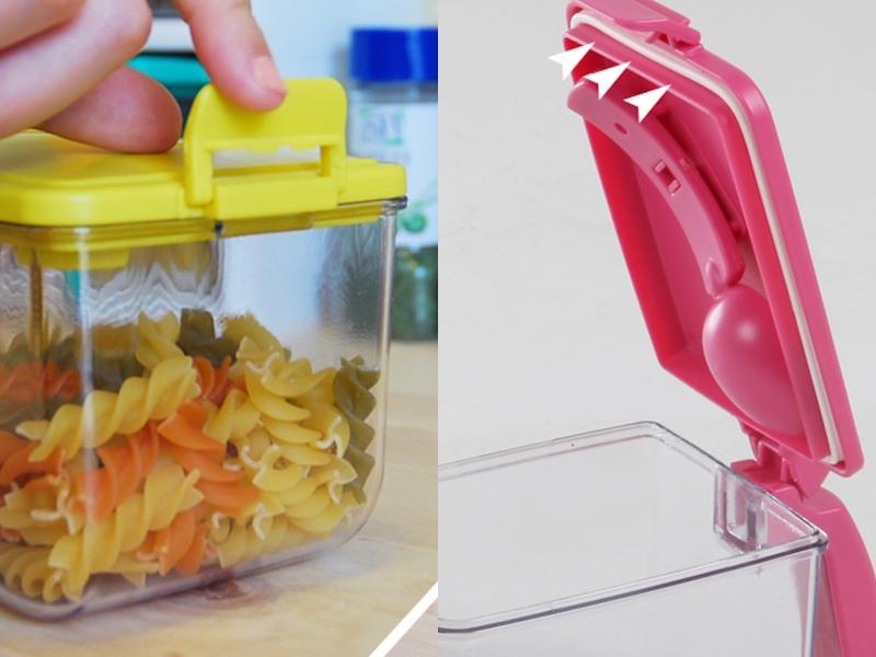 利用天窗式開法,能將穀物麥片、堅果、咖啡豆、零食、麵條等,輕鬆倒取出適當份量;兩款容量尺寸,方便承裝各種食品。