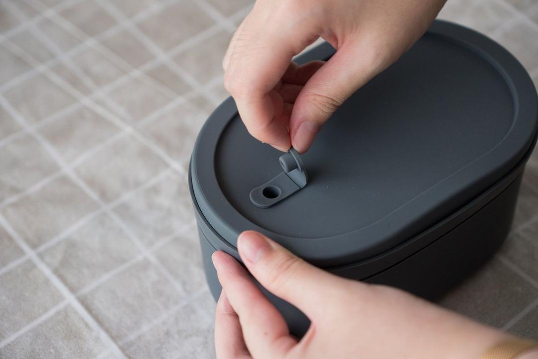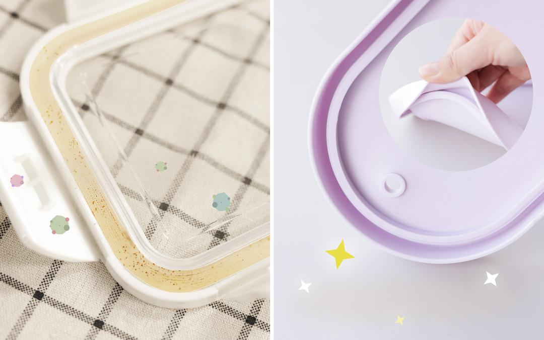 一般便當盒蓋子的矽膠條很難取出,所以容易殘留汙漬,成為細菌的溫床。芯動便當盒一體成型的矽膠上蓋設計,表面光滑,方便清洗。