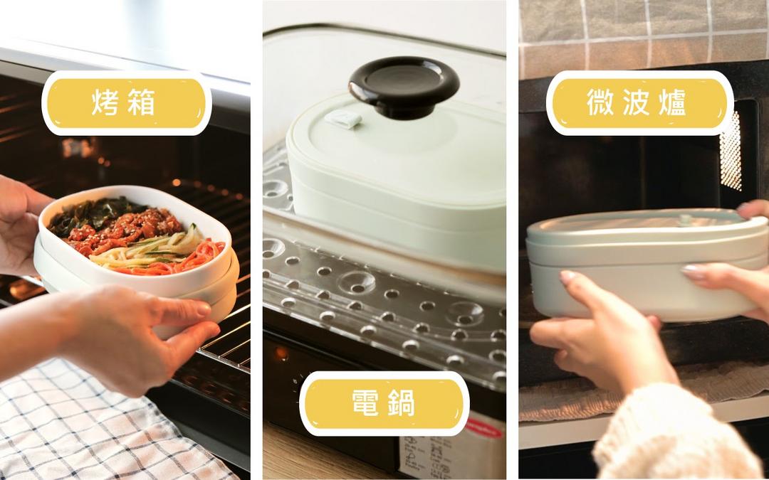 陶瓷與矽膠,雙材質完美組合,可適用於微波爐、電鍋、烤箱,方便加熱,輕鬆變化出更多不同菜色,開啟做煮生活。