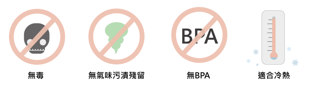 矽膠上蓋使用食品級矽膠材質(同嬰兒奶嘴等級),100% 無塑料,一體成型,清潔無死角,再也不用擔心矽膠條藏汙納垢了。