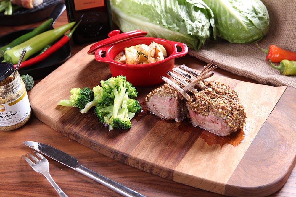 精選6個月齡的紐西蘭小牛,小牛肉呈粉紅色澤,肉質非常軟嫩且無牛腥味,特別適合牙口不好的老人及小孩。法式修清的五星級肋排,簡單灑上玫瑰鹽就非常美味,或是搭配芥末子醬也有不同風味!