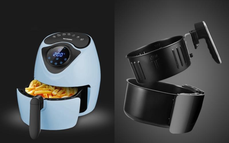 可定時、免看顧,結合炸、燒烤、烘烤、重新加熱功能,利用 360℃ 熱風快速循環加熱,逼出食物油脂,降低卡路里,隨時享用健康酥脆的低油炸物。