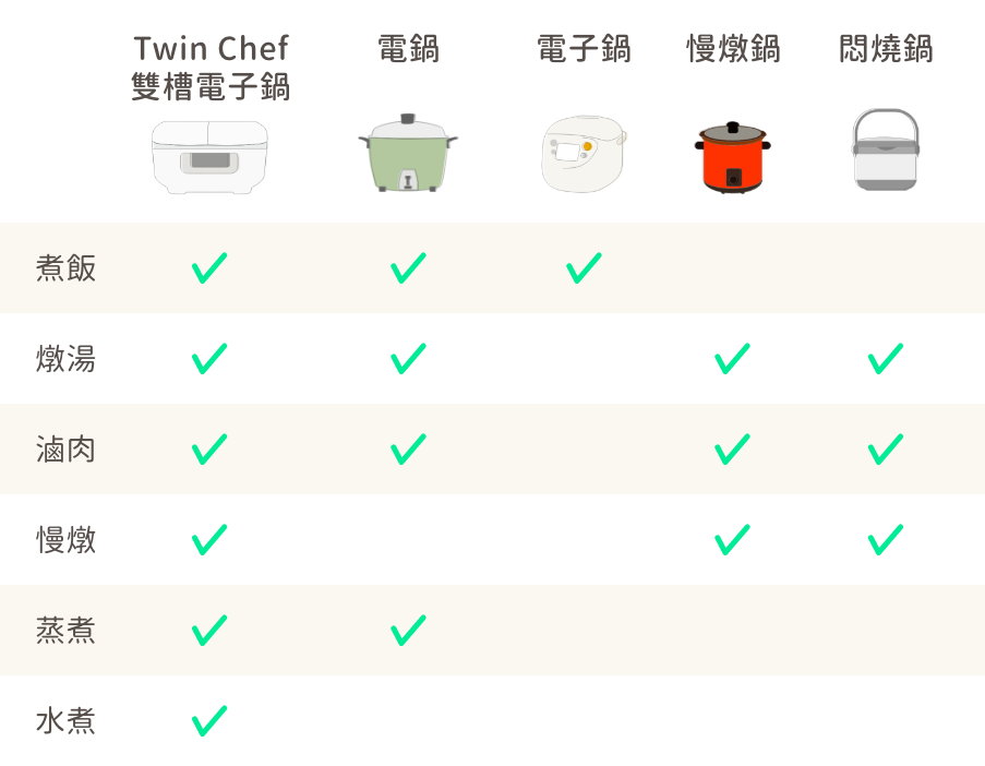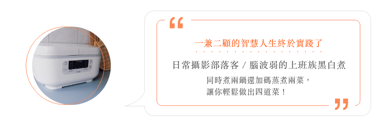 - 獨家雙槽內鍋,一邊煮飯一邊煮湯
