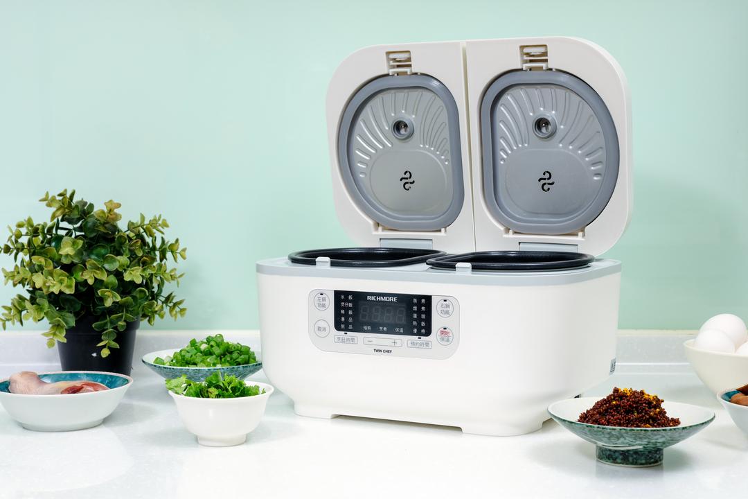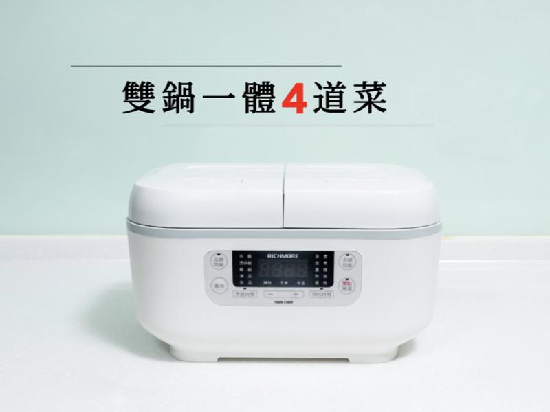 Twin Chef 全能雙槽電子鍋的雙槽設計,一次最多能夠同時烹煮四道菜餚。免去清洗下廚後的碗盤山;免顧火的特性,不流汗也能出好菜,多出的時間還能好好陪伴家人。
