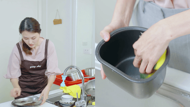 「做菜完後,要清洗堆積如山的鍋碗瓢盆都覺得眼神死。」