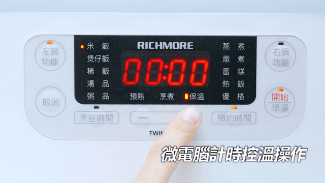 現代人工作忙碌,不一定每天都能準時回家吃晚餐。Richmore 也有的一鍵保溫功能,可以讓飯菜依然熱呼呼,再晚回家都有暖心好料。