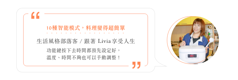 我們設置了 10 個快速料理選單,免去自訂溫度時間的麻煩和不知所措,只要按照想做的菜色,選擇適合的料理模式,Twin Chef 就能幫你做出完美料理。