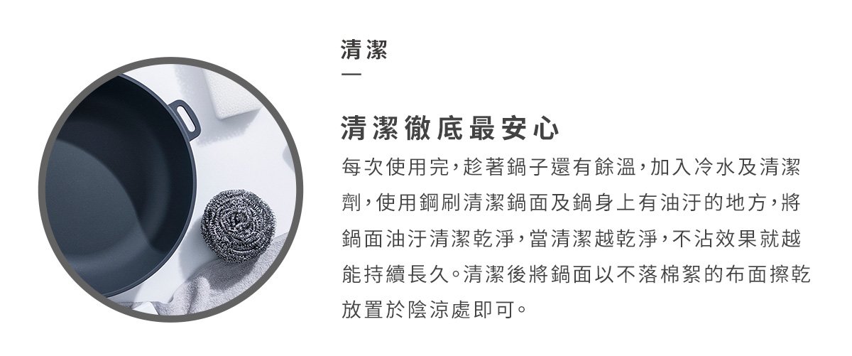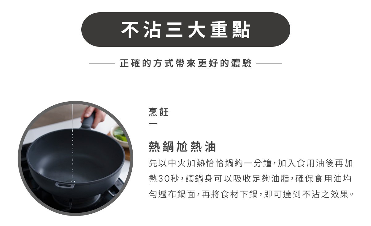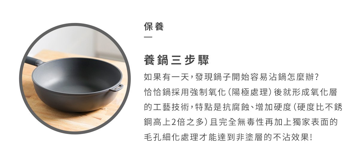 這時只要好好養鍋,徹底將鍋中的油汙煮出,再進行保養,即可恢復不沾之效果。